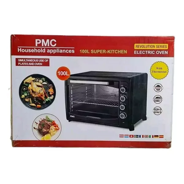 The PMC Electric Oven is a versatile 100L capacity oven, perfect for family cooking. It features convection hot air for even baking and roasting, a clear inner lamp, and intuitive controls to handle everything from large roasts to 16-inch cakes.