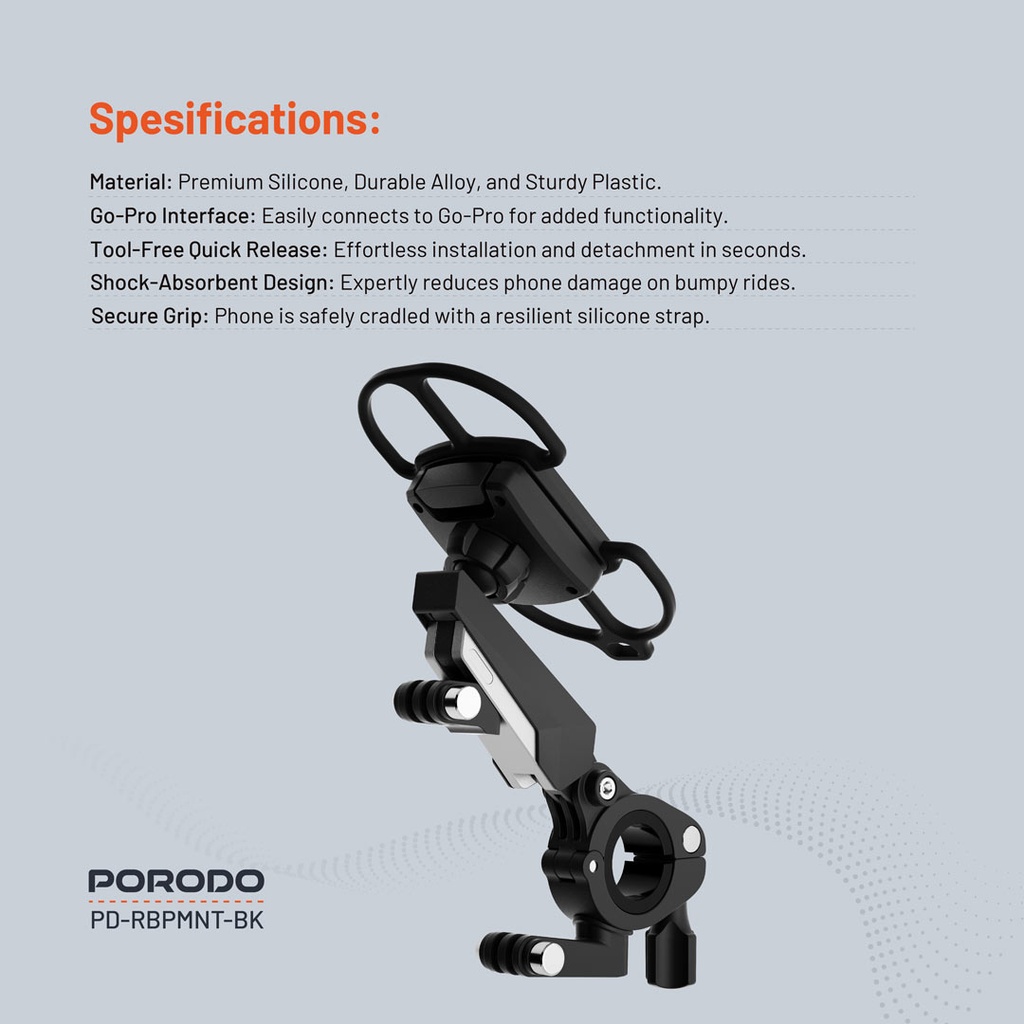 Porodo 360° Rotatable Bike Phone Mount - Black