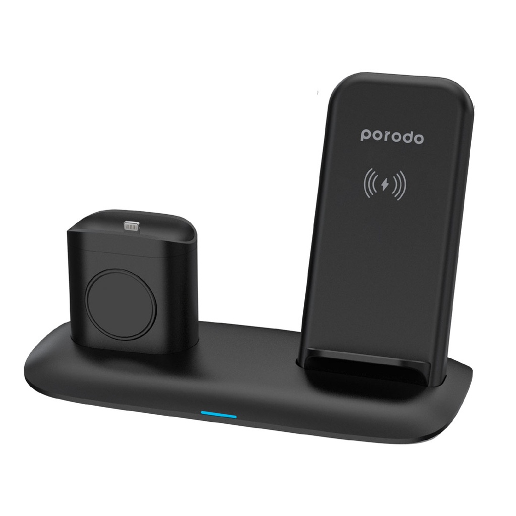 Porodo 4 in 1 Charging Station 7.5W/10W for iPhone / Apple Watch / Airpods - Black