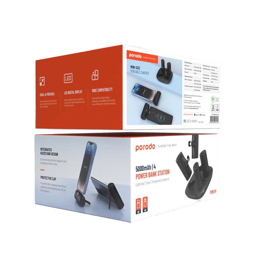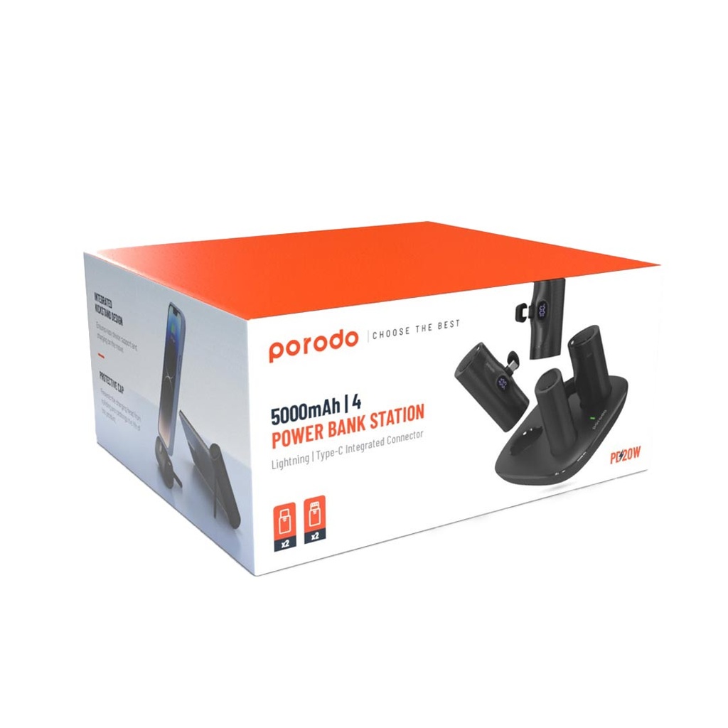 Porodo 5000mAh | 4 Power Bank Station with Lightning | Type-C integrated Connector