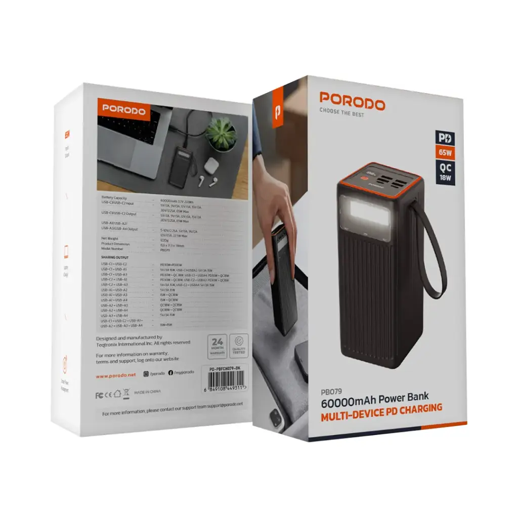 Porodo 60000mAh Power Bank Multi-Device PD Charging - Black