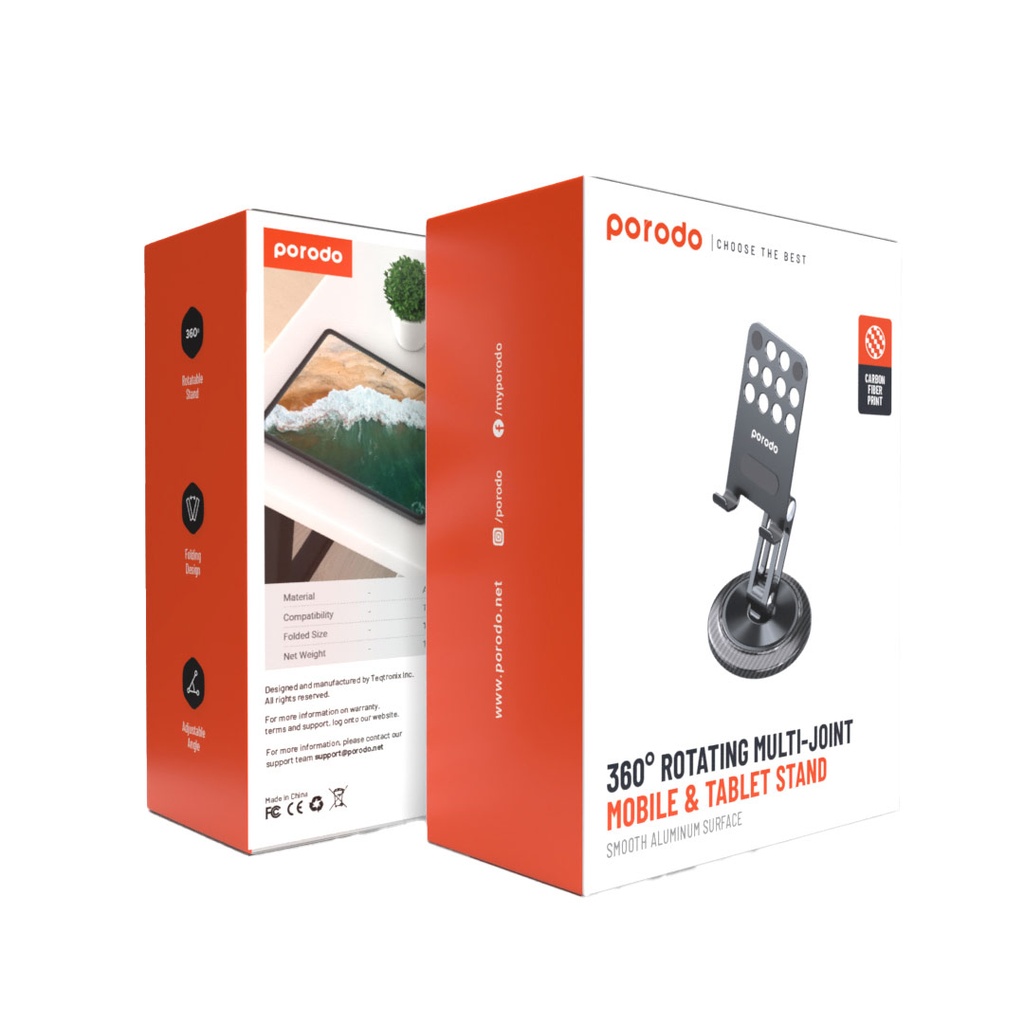 Porodo Alum. alloy x carbon fiber 360% Rotate Phone Stand - Grey