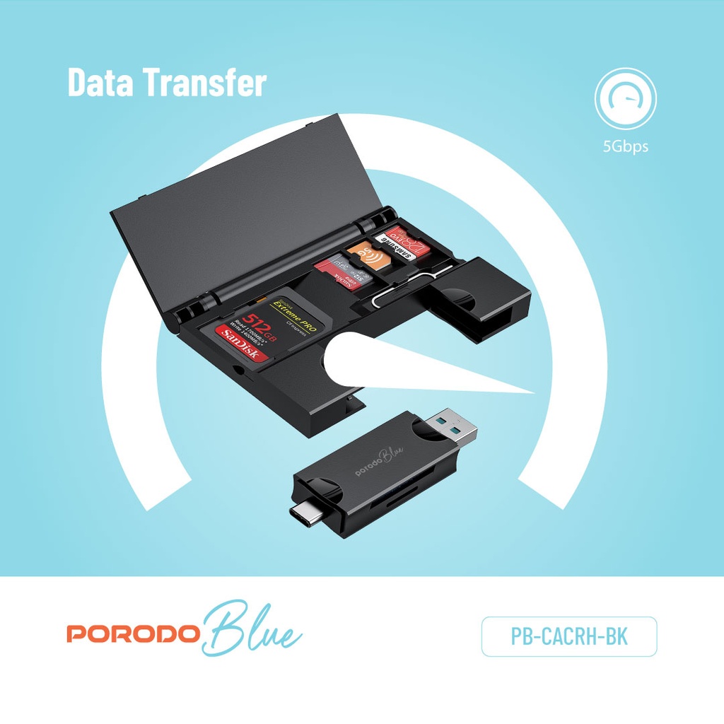 Porodo Blue 2-in-1 Card Reader with Card Holder