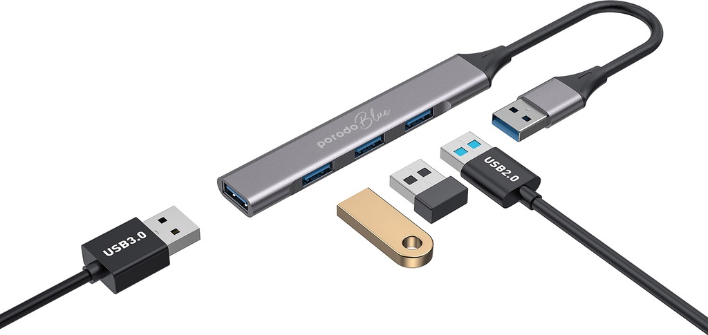 Porodo Blue 4 in1 USB-A Hub to 1 x USB-A 3.0 5Gbps and 3 x USB- A 2.0 480Mbps
