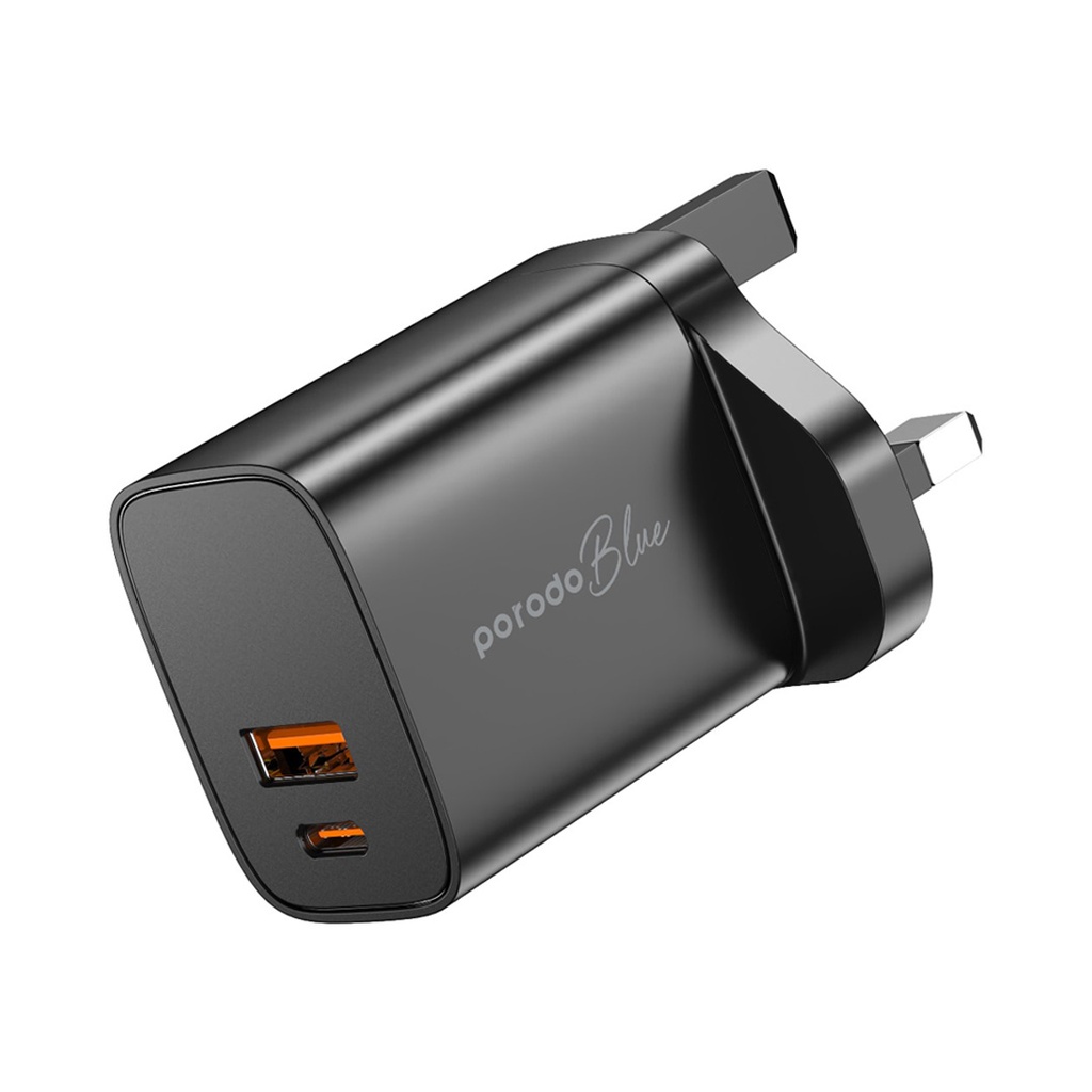 Porodo Blue Dual Port Wall Charger USB-A Quick Charge 3.0