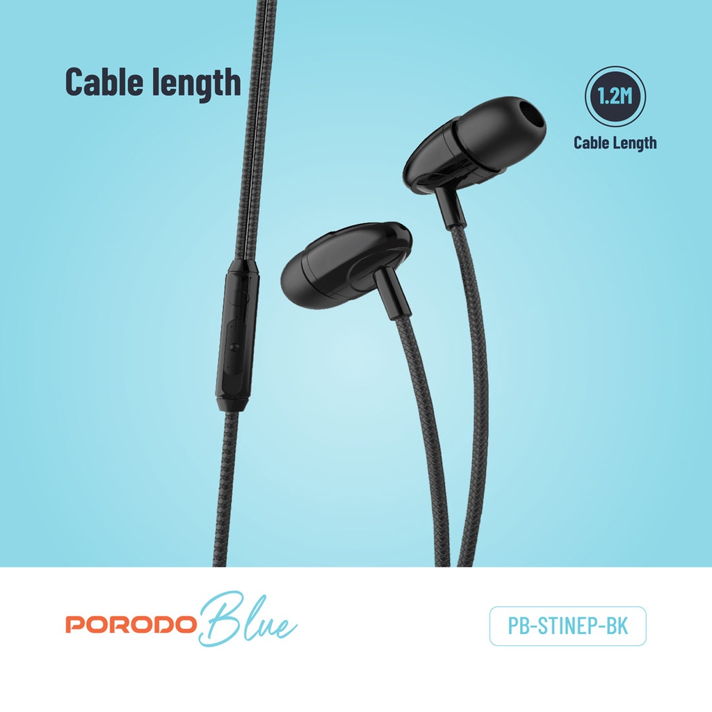 Porodo Blue Stereo Earphones with Aux Connector 3.5mm - Black