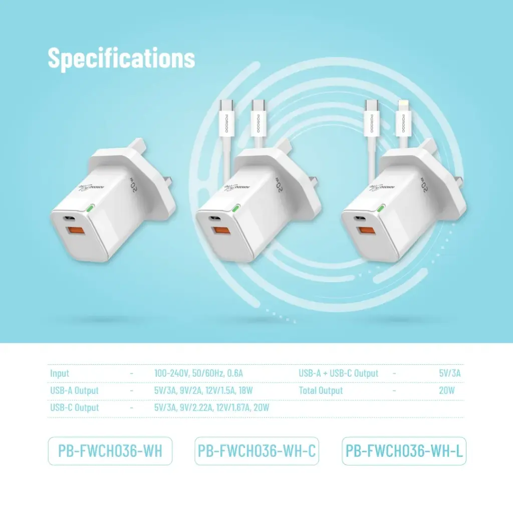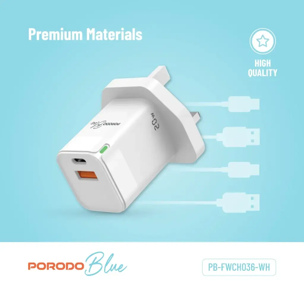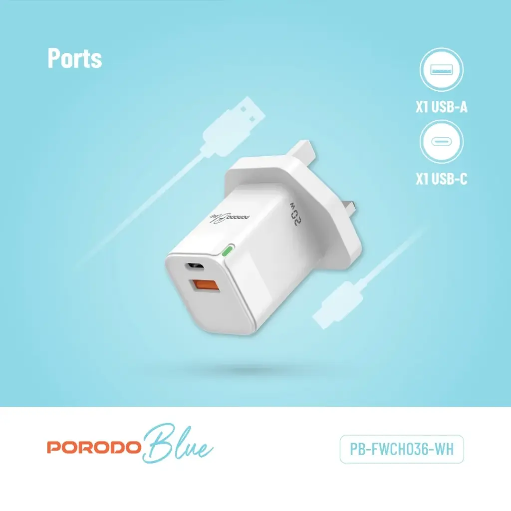 Porodo Blue Ultra-Quick Charger USB-A to USB-C - White