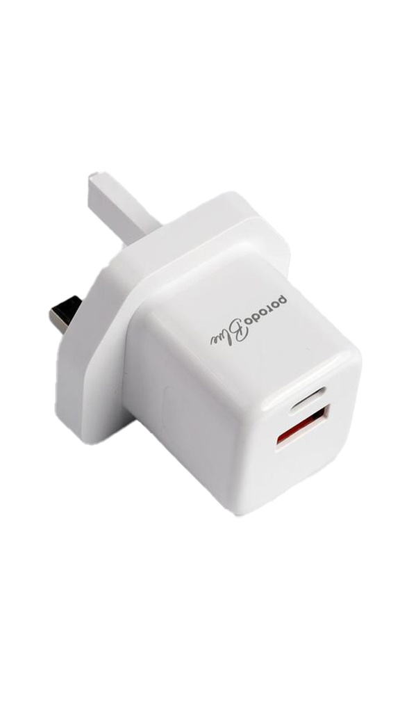 Porodo Blue Wall Charger 1*PD Type-C and 1* QC Type-A UK PD 20W - White