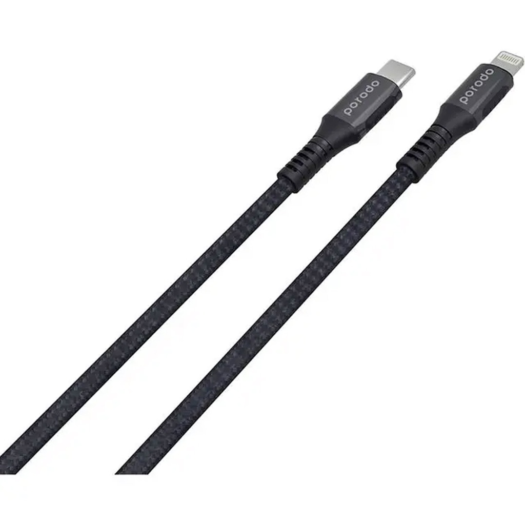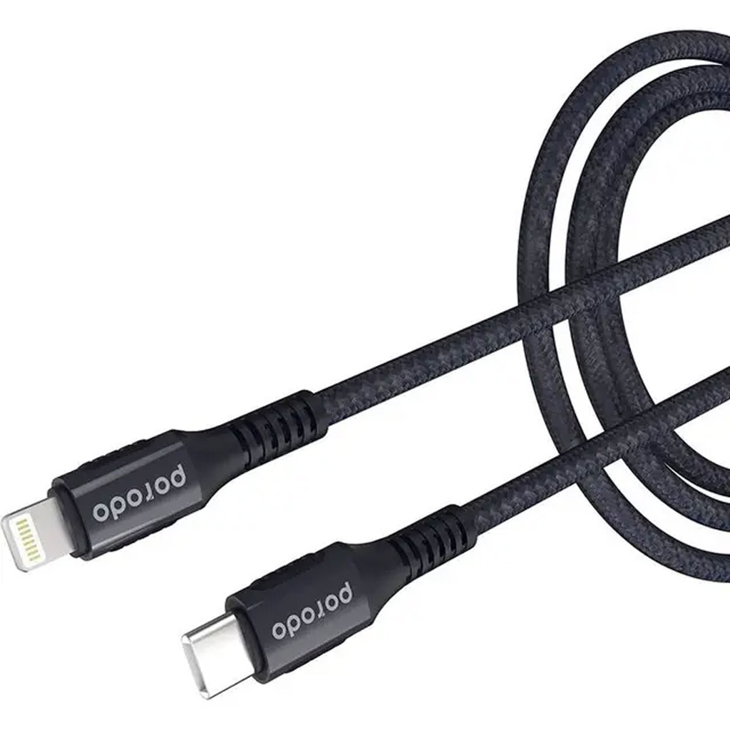 Porodo Braided & Aluminum Type-C to Lightning Cable 2M 3A - Black