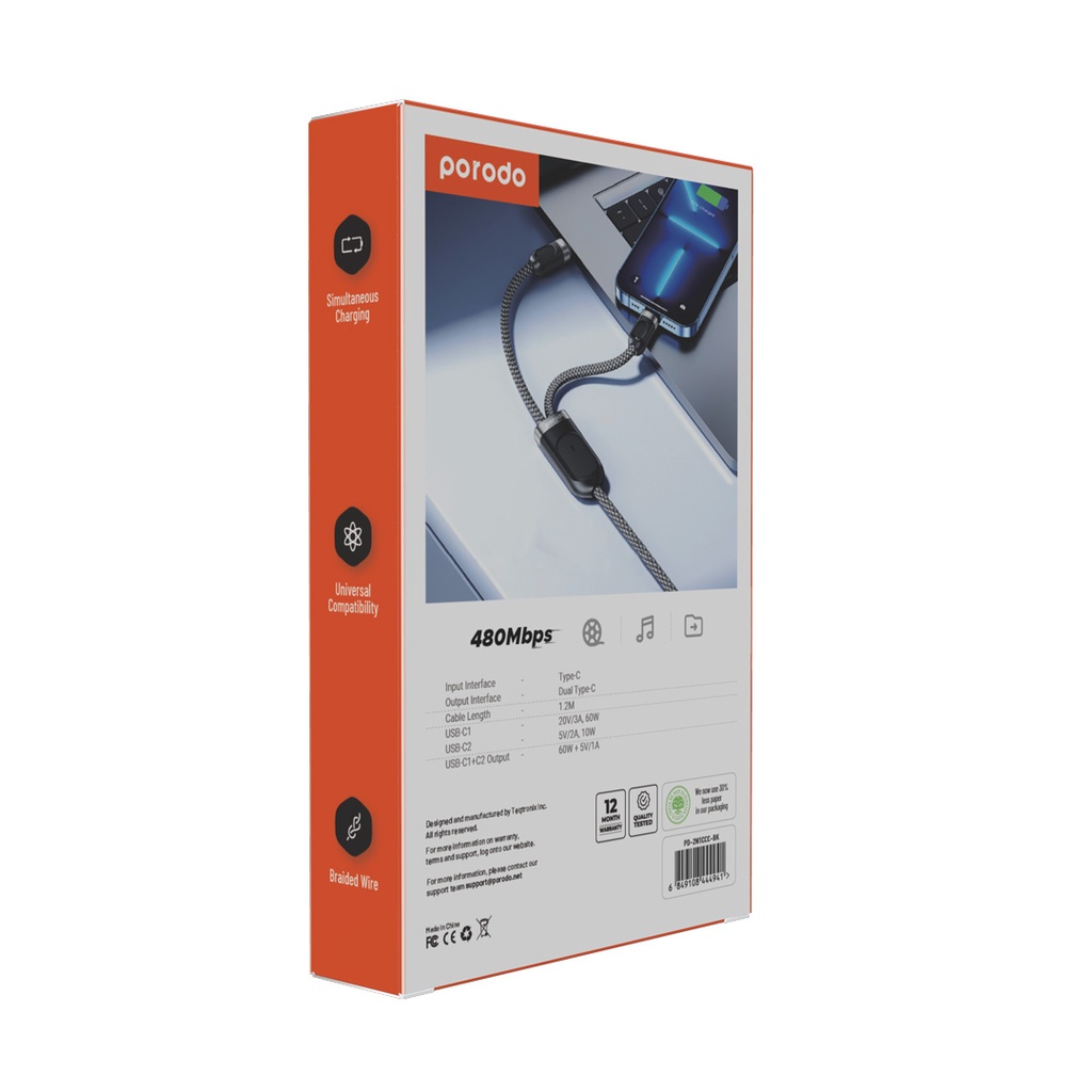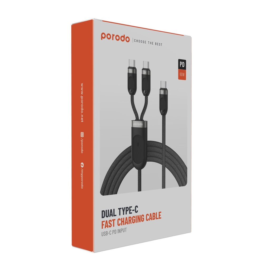 Porodo Dual Type-C Fast Charging Cable USB-C PD Input - Black