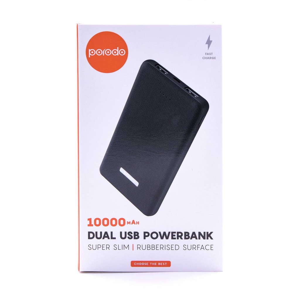 Porodo Dual USB Power Bank 10000mAh with Rubberised Surface