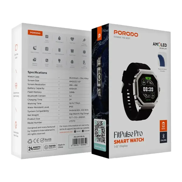 Porodo Essential Pulse Smart Watch 1.38" HD Display