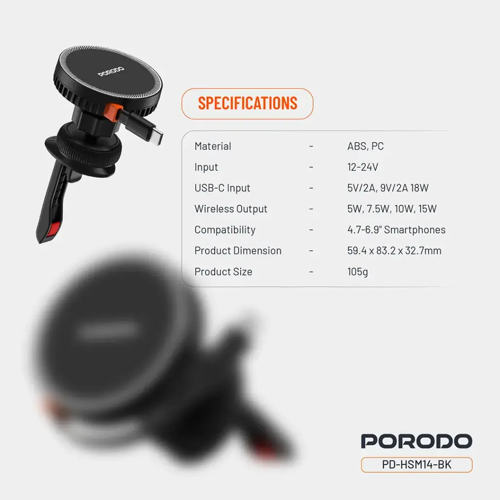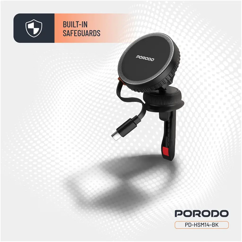 Porodo HS14 MagSafe Charger Retractable Type-C - Black