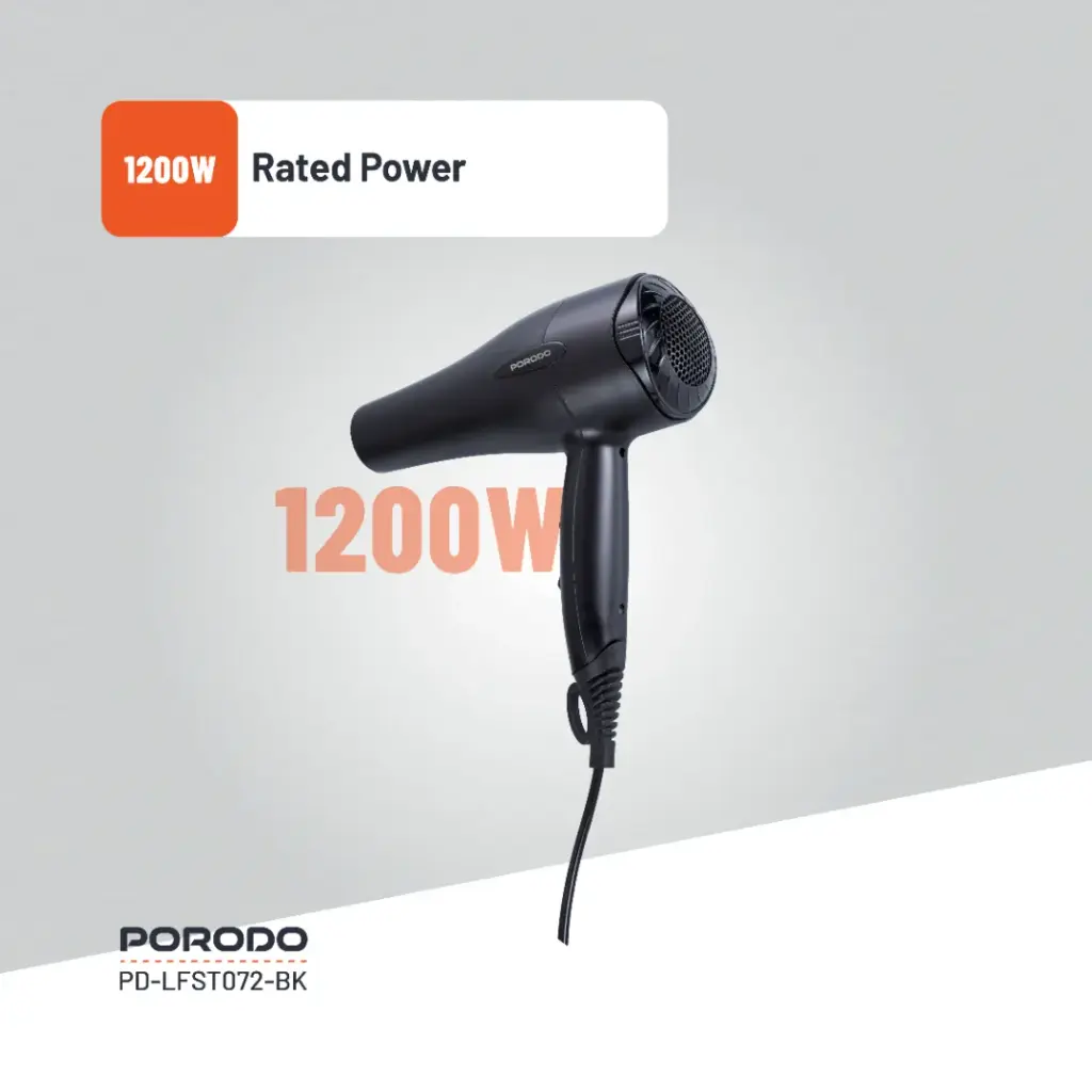 Porodo Lifestyle 1200W Hair Dryer 1.8M Cable - Black