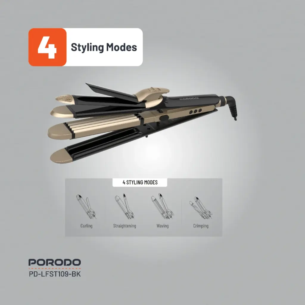 Porodo Lifestyle 4 Style Hair Iron - Black