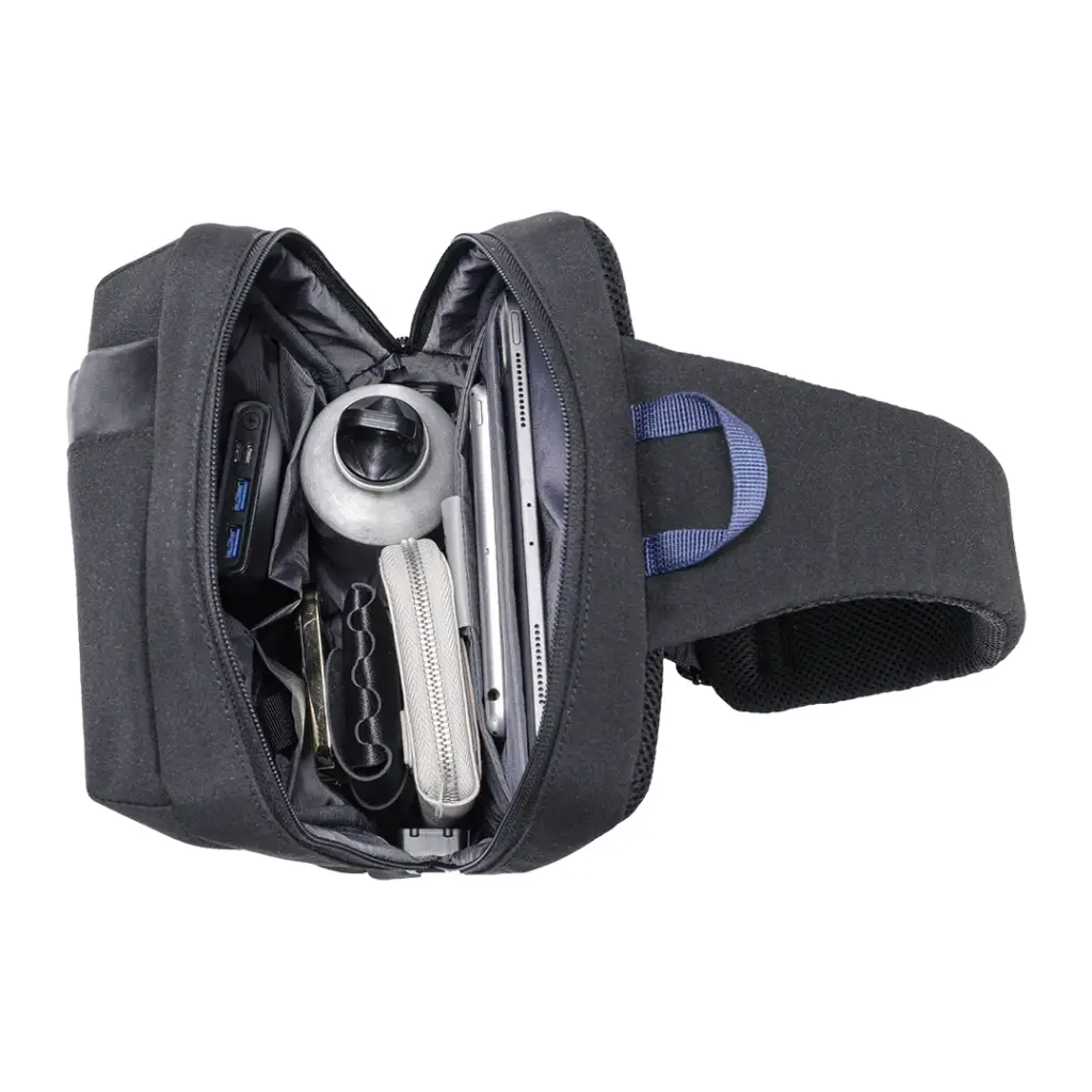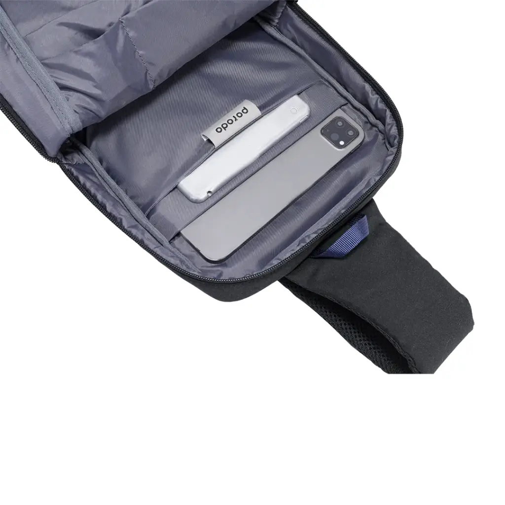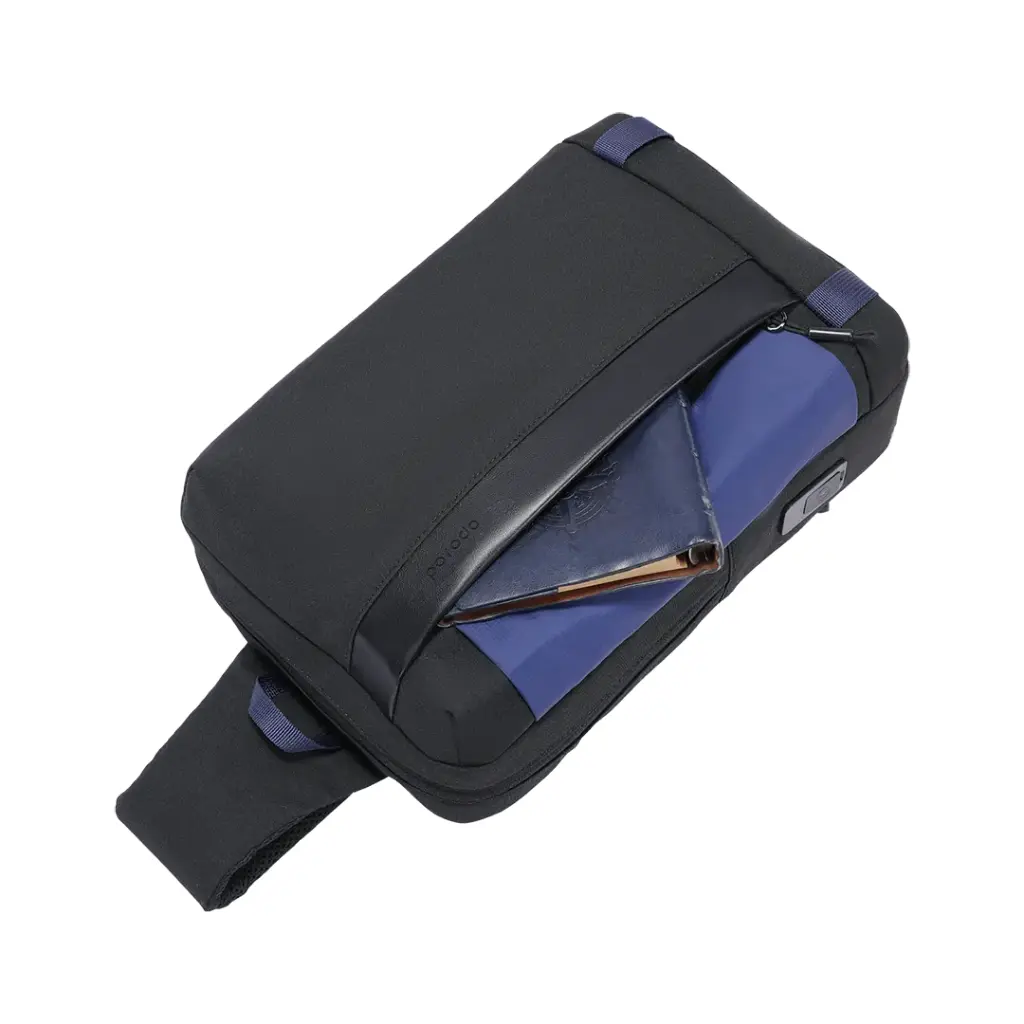 Porodo Lifestyle Cross Body Sling Bag with Fingerprint Lock - Black/Blue