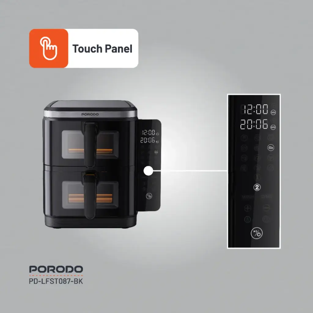 Porodo Lifestyle Double Stack Air Fryer with 12 Presets - Black