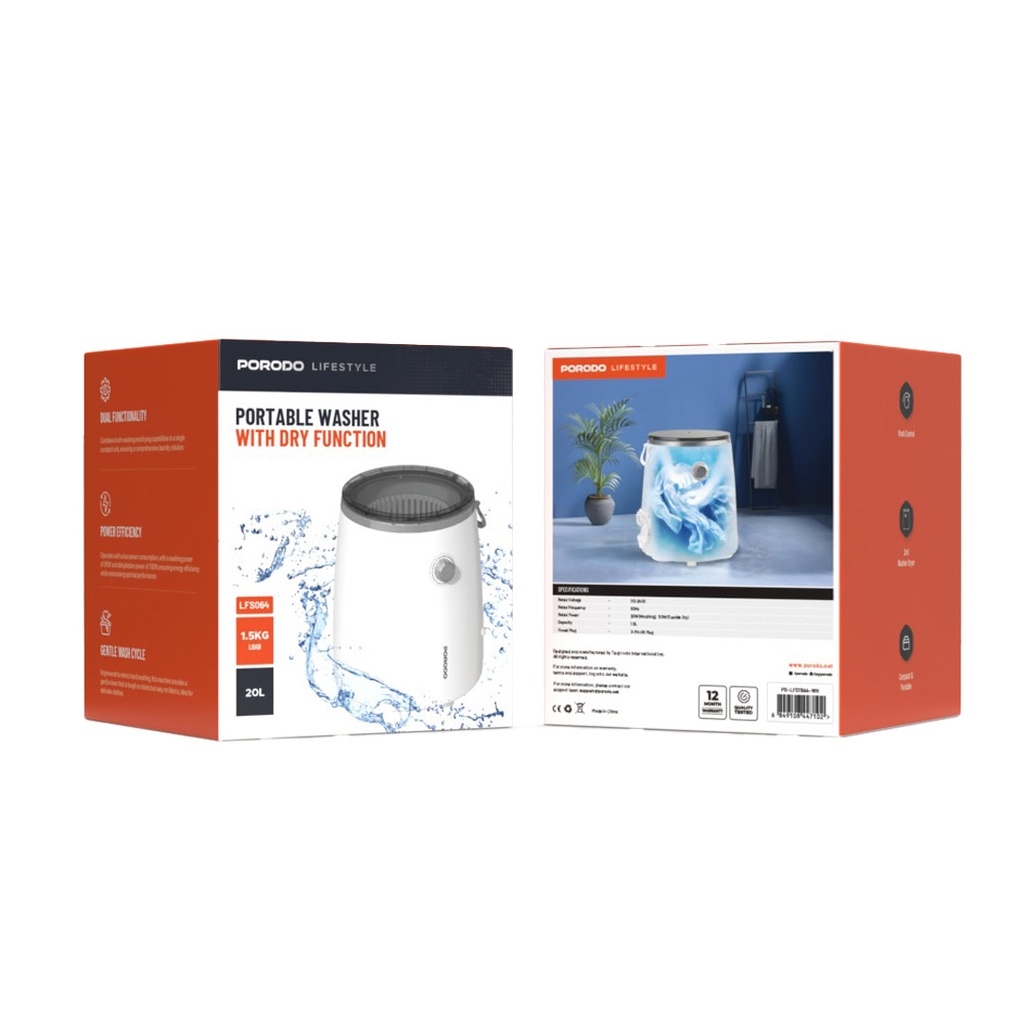Porodo Lifestyle Portable Mini Washing Machine - White
