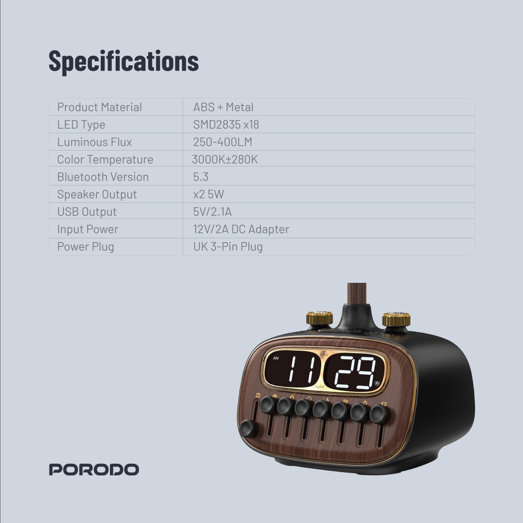 Porodo Lifestyle Retro Desk Lamp with White Noise and Bluetooth Speaker - Black