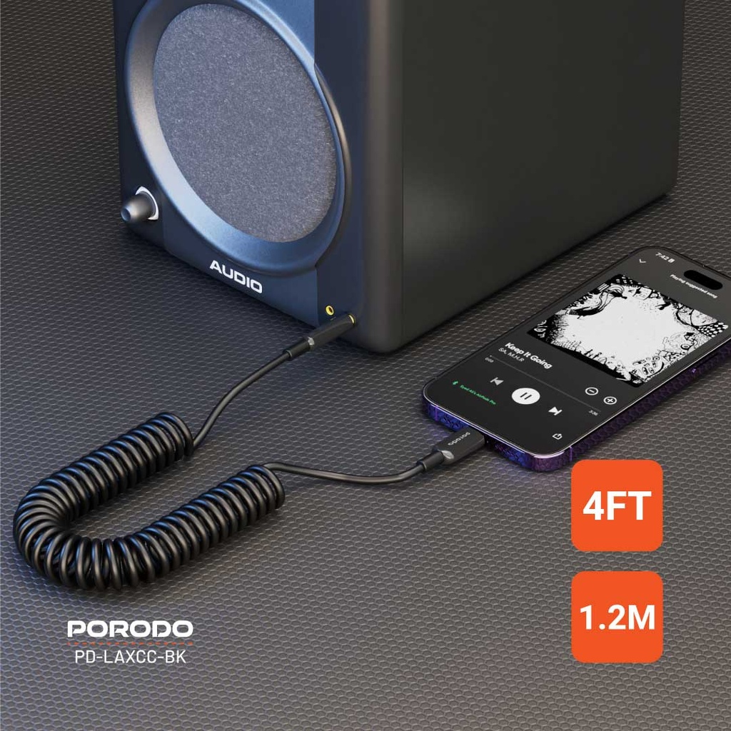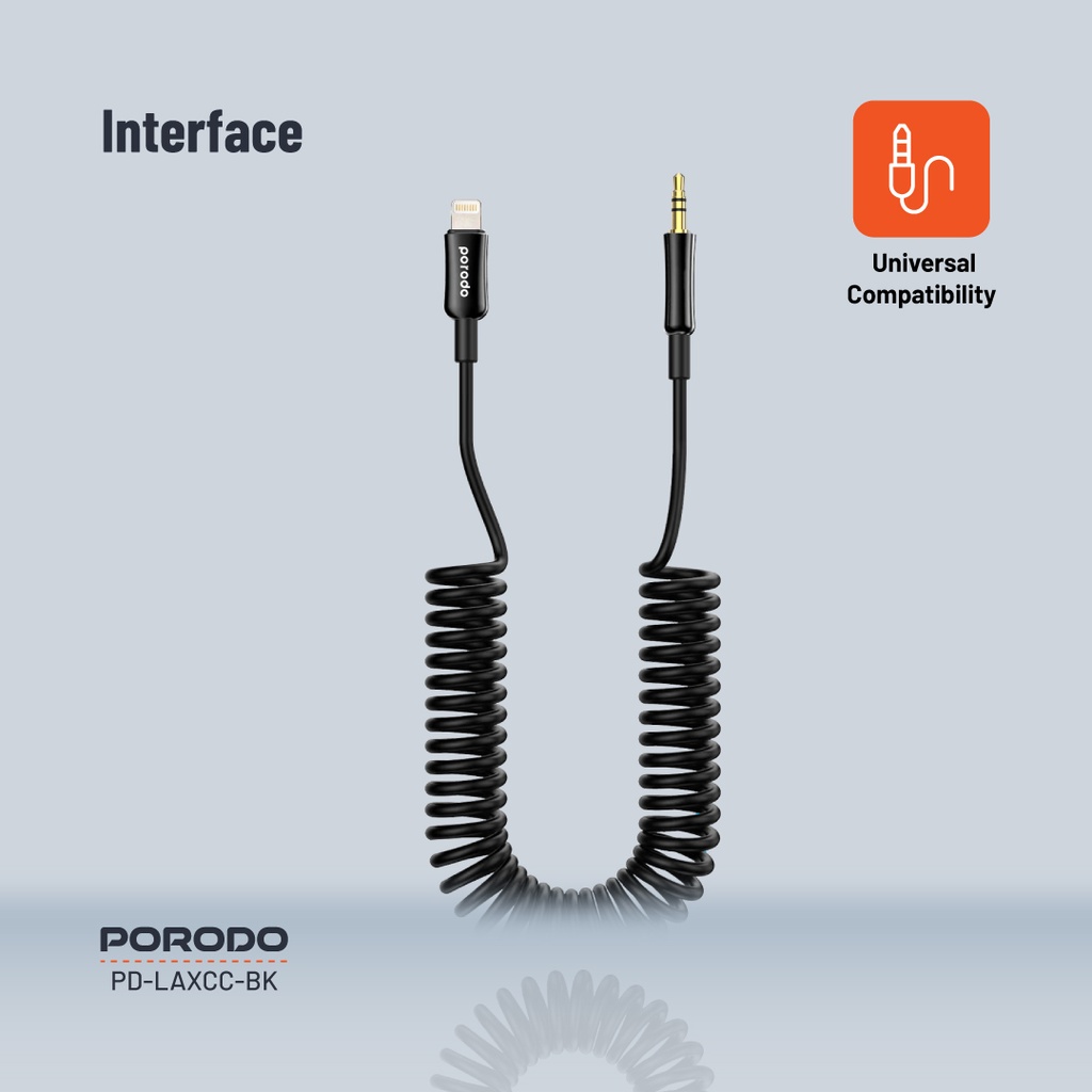 Porodo Lightning to AUX Coil Cable 1.2M - Black