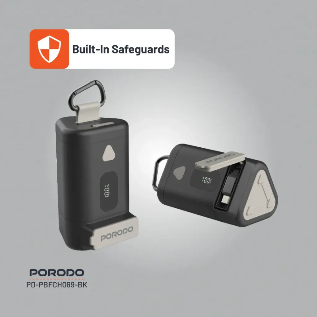 Porodo Power Bank 15000mAh with Type-C Retractable cable- Black