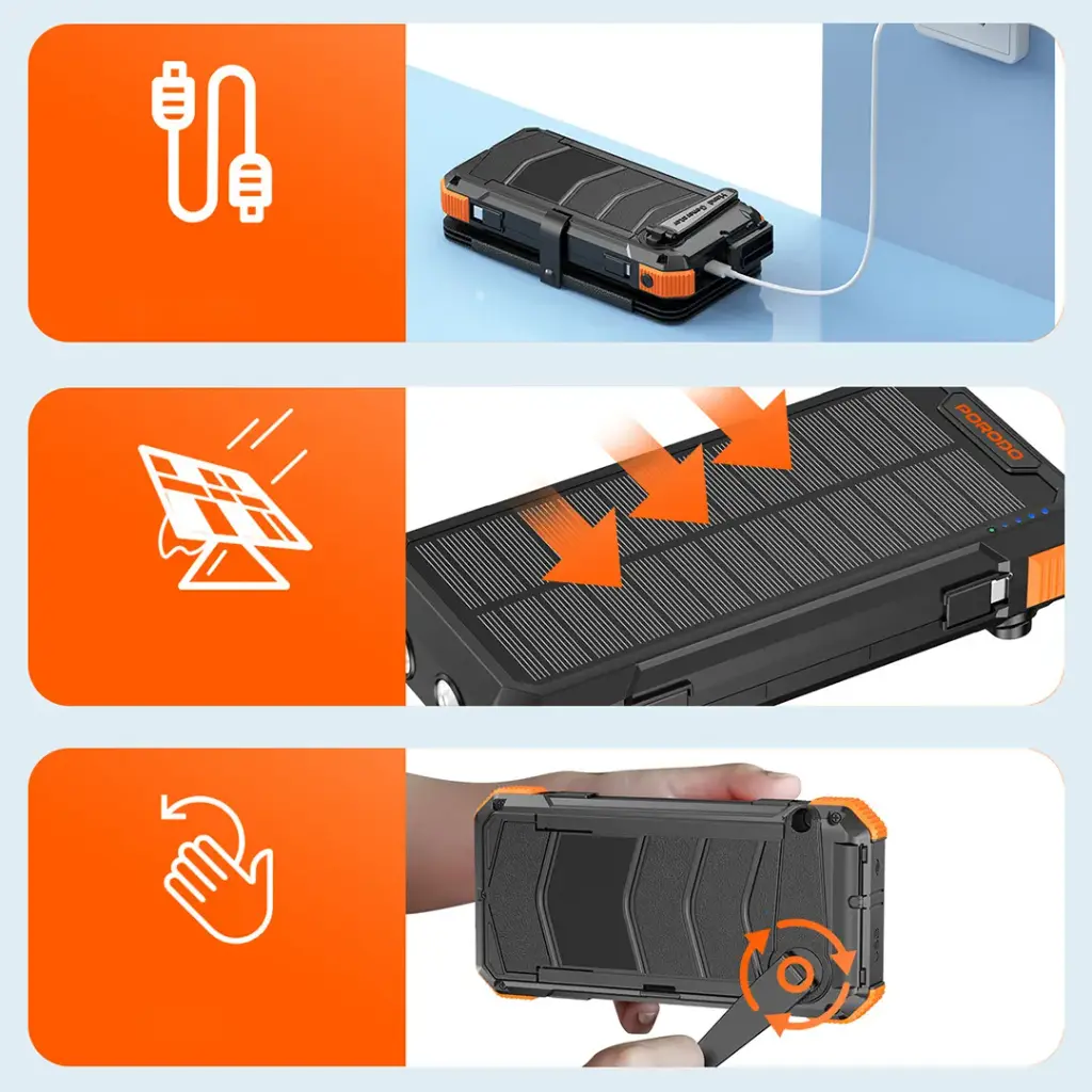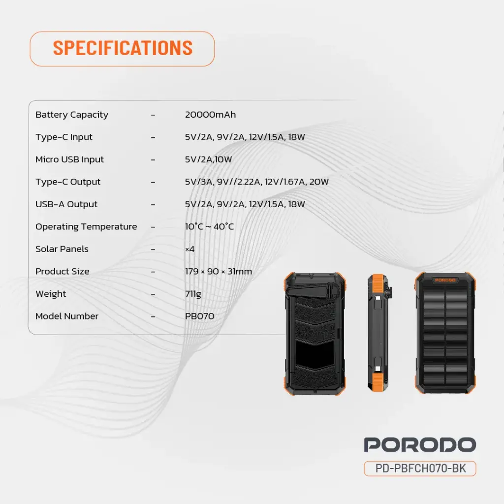 Porodo Power Bank 20000mAh 4-Panel Solar - Black