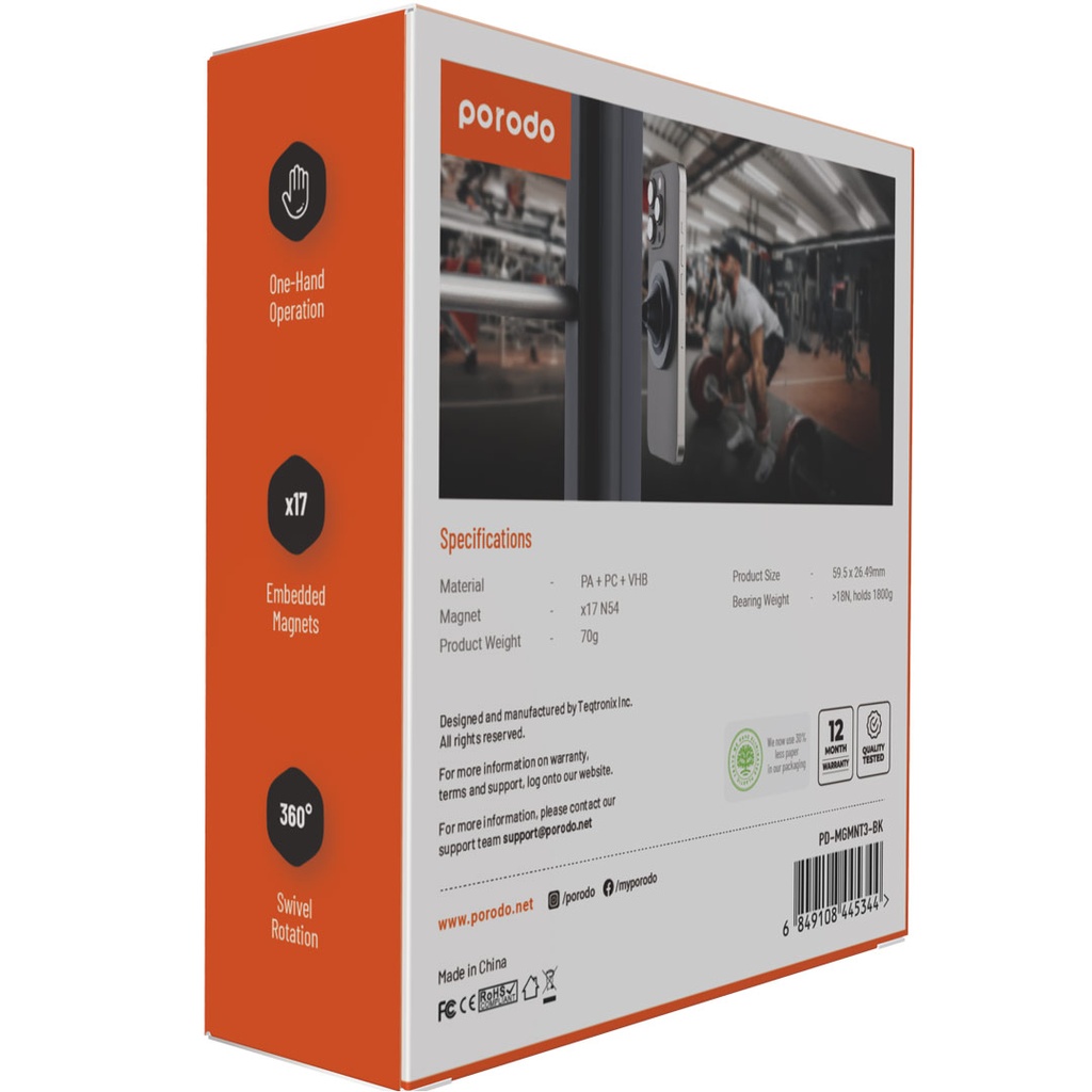 Porodo Stick-On MagSafe All-Purpose Mount Smooth Swivel - Black