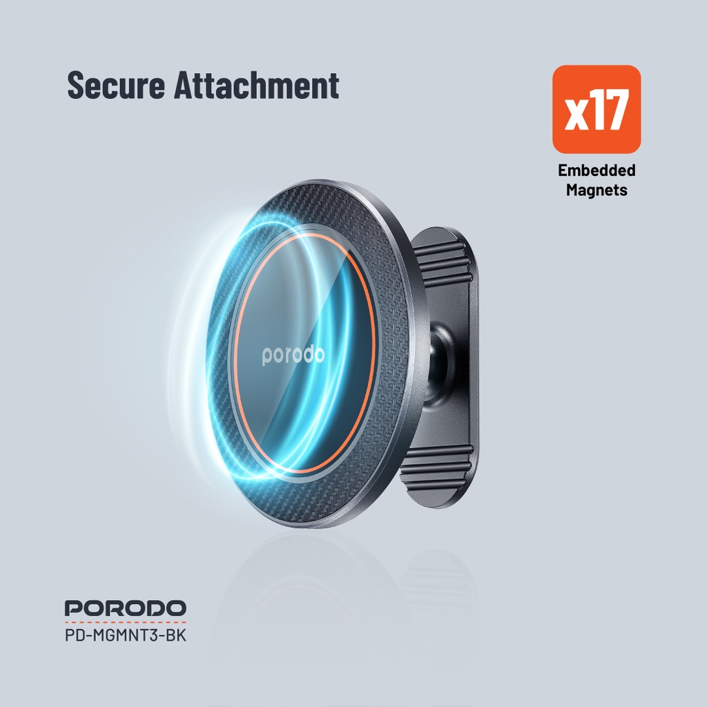 Porodo 3 In 1 Magnetic Car Charger Mount 15W With 20W PD Car Charger
