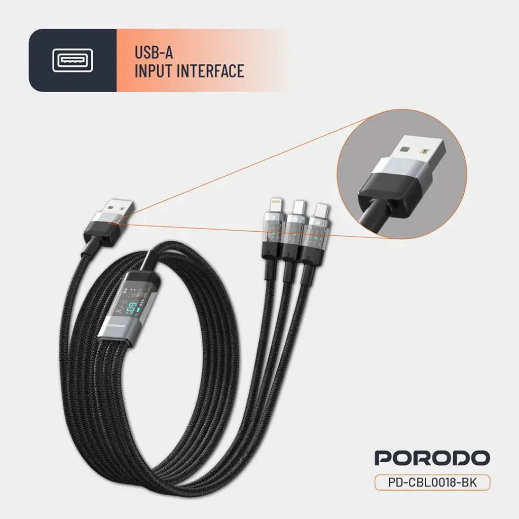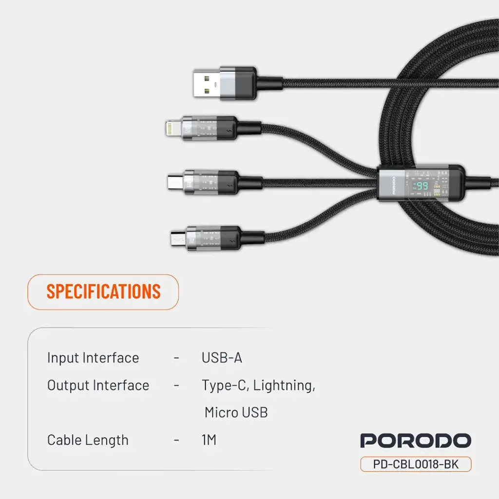 Porodo Transparent USB-A Input Fast Charging Cable - Black