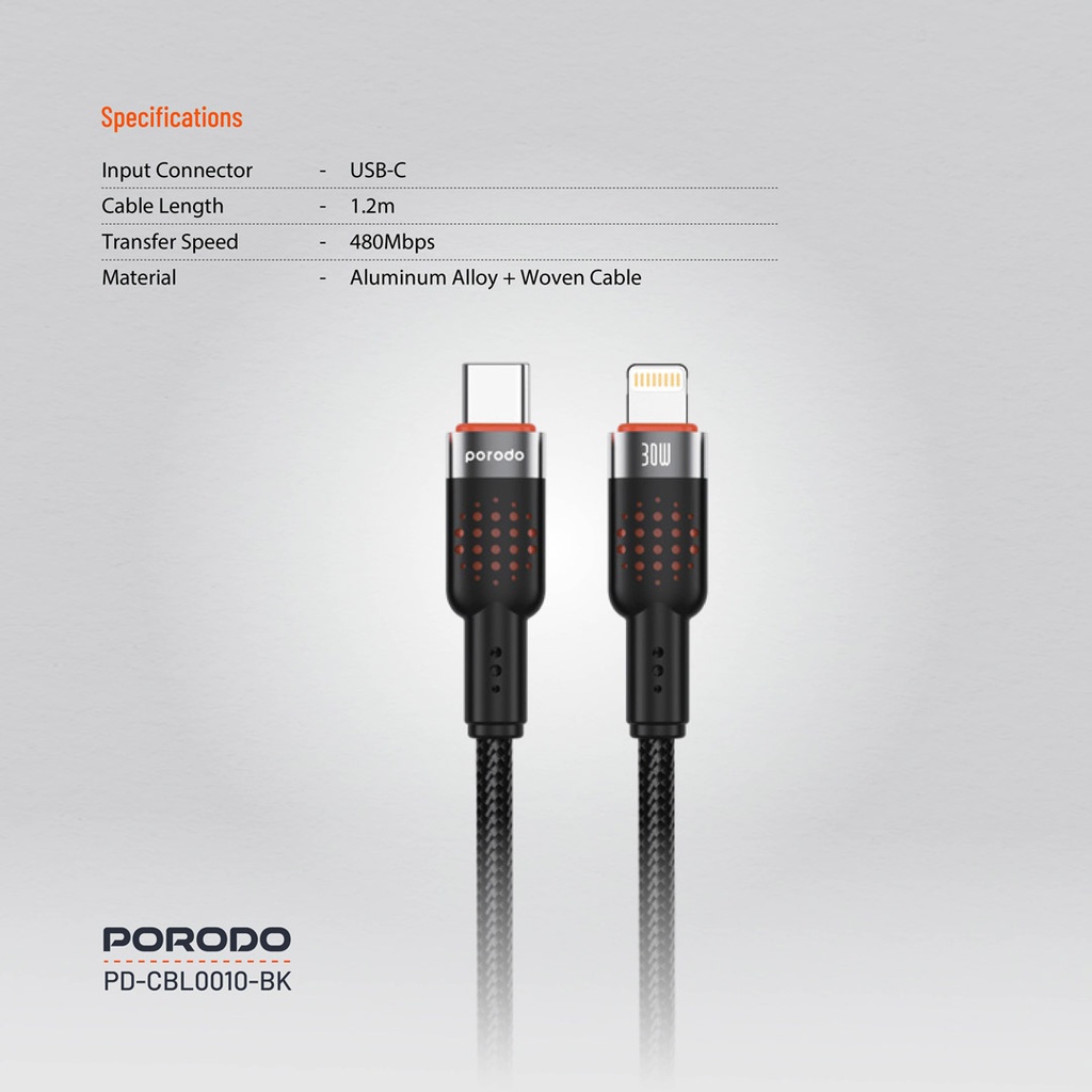 Porodo USB-C to Lightning Aluminum Braided Cable