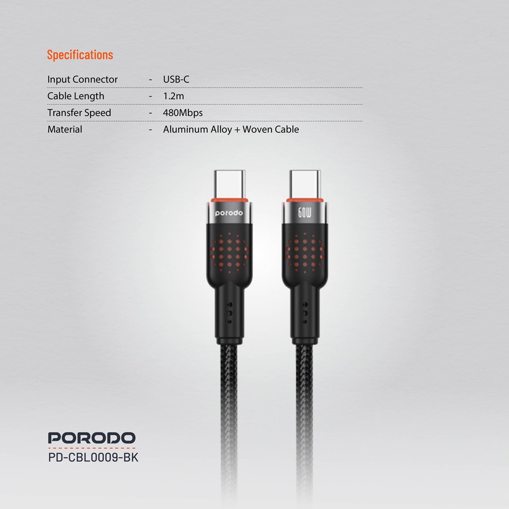 Porodo USB-C to USB-C Aluminum Braided Cable