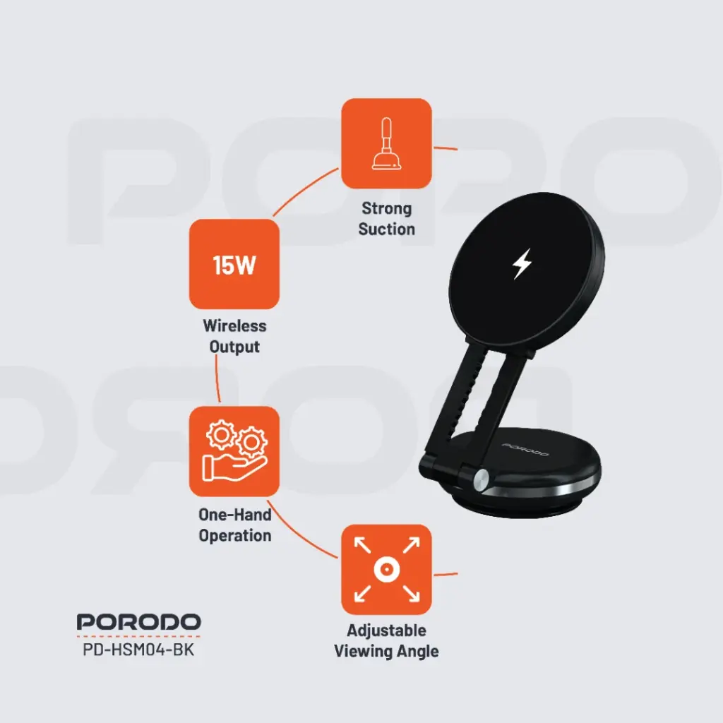 Porodo Phone Holder And Fast Wireless Car Charger (2 in 1)