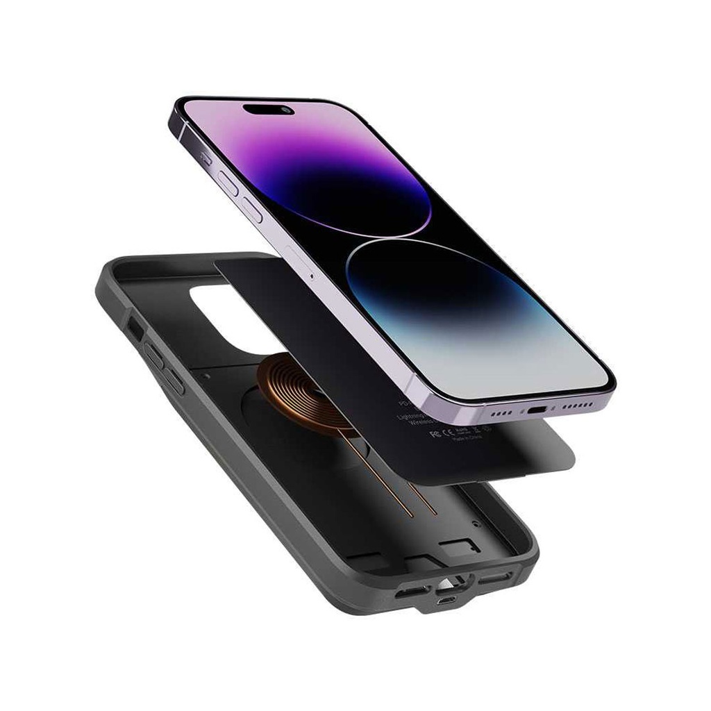 Porodo Wireless Charging Battery Case 5000mAh for iPhone 14 Pro - Black