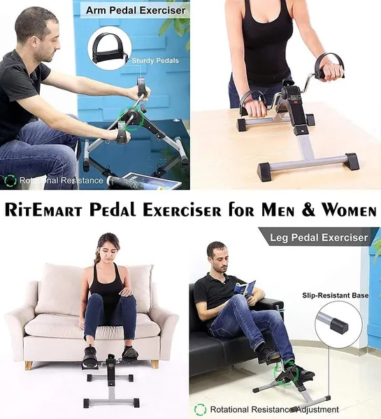 Enhance your workout routine with a machine that targets both arms and legs. This pedal exerciser allows you to perform low-impact exercises for your upper and lower body, improving circulation, strength, and flexibility. It's perfect for a full-body workout without the need for multiple pieces of equipment.