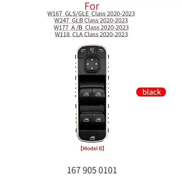 Compatible With Mercedes Benz Gle Gls W167 2020+ Glb W247 2020+ A Class W177 2020+ B Class W247 2020+ Cla W118 2020+ Power Master Window Control Switch Button Black Standard 1679059903