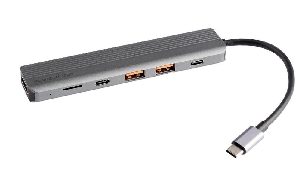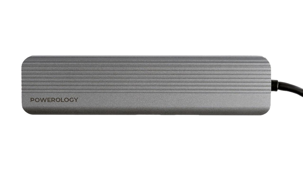 Powerology 6-in-1 Slim 4K HDMI USB-C Hub is a multi-port Hub with the ability of fast charging (PD100W) and high-speed data transfer (10Gbps). It features USB-A and USB-C version 3.2 ports, which refer to the latest standard for USB connectors, accommodating a wide range of devices. The 4K HDMI Ultra HD output ensures a crystal-clear visual experience. Additionally, it is provided with the Micro SD slot to allow easy access to memory cards, ideal for photographers and content creators. Due to its connectivity, streamlined setups, efficient data transfer, charging possibility, and comprehensive features, Powerology 6-in-1 Hub is the perfect choice for professionals who are always in need of extra port for linking more electronic devices in order to optimize their device capabilities.