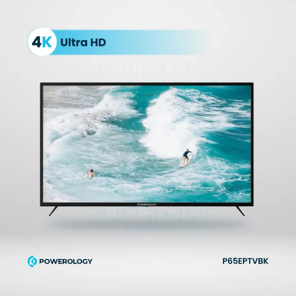 The 65-inch Powerology Break-Proof Android Smart TV combines class-leading technology with mind-blowing visuals. As for resolution, it boasts 4K UHD (3840 x 2160) and offers a clear vision. It manages to make a whole lot of noise through a wide color gamut (16.7M colors) at a contrast ratio of 5000:1. There are also 350 units for viewing comfort in brightly lit spaces, with a full screen replacing the viewing ratio and immersing users into a new dimension of unimaginable levels. The TV runs on Android 11 via the Quad-Core ARM Cortex-A53 CPU and Mali G52 GPU, ensuring high performance for the units. It features built-in Wi-Fi and Bluetooth V5.0 and has many HDMI and VGA inputs, making the TV an exquisite entertainment center. The screen is surrounded by ultra-thin bezels and covered by a tempered glass panel 4mm thick to ensure robustness and modern styling.