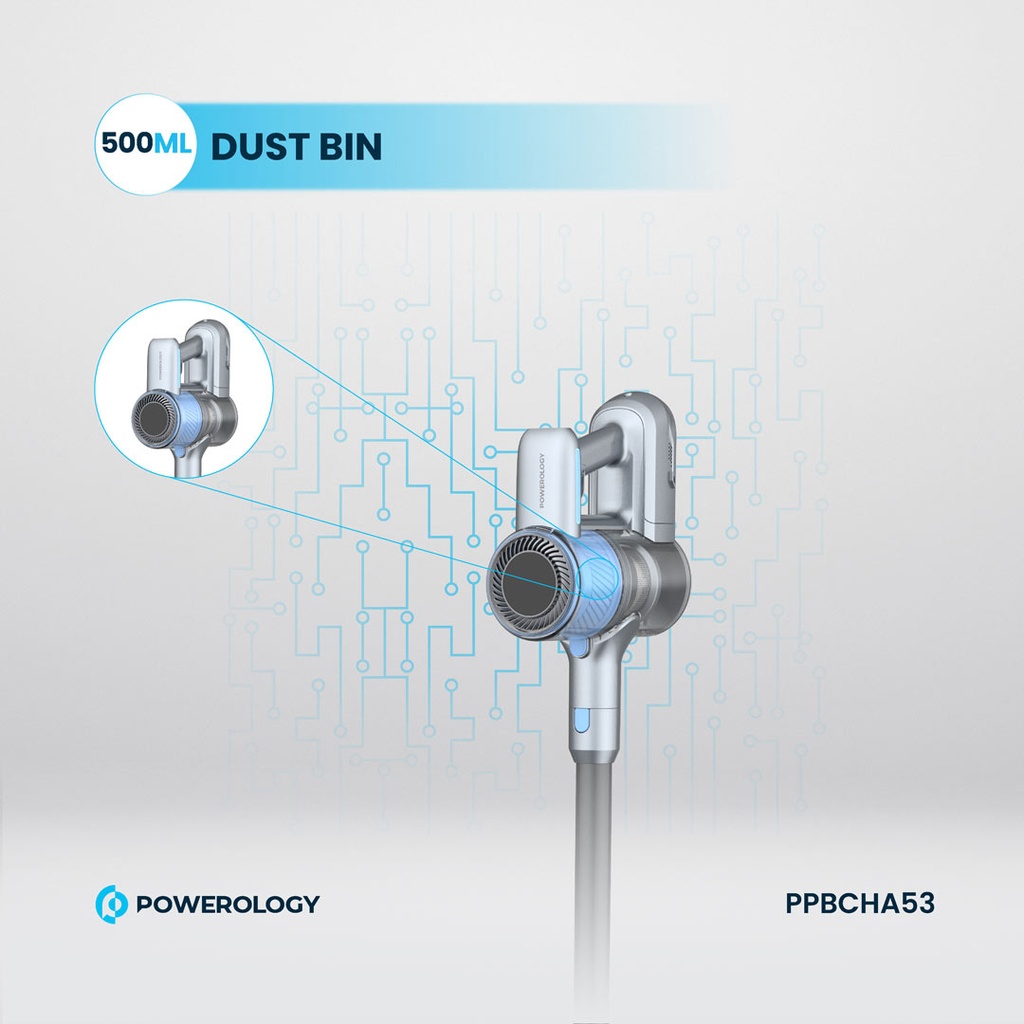 Powerology Cordless Stick Vacuum Cleaner, Dark Grey, is designed to be carried out with high performance and convenience. It enjoys a 350W motor with 25000Pa suction power sufficient to reach deep into every surface. The cordless vacuum has a 2000mAh, 22.2V Li-ion battery, ensuring mighty power for extended operation and 5 hours for a full charge. Choose ECO, MED, or Turbo modes for tailored cleaning. 500ml dust container and HEPA filter provide extra convenience and superb air quality while the LED maintains the battery level. The electric brush makes this vacuum a versatile cleaning unit. Weighing at only 2.3 KG, this cordless vacuum is more portable and easy to maneuver around than others, making it an ideal purchase for modern homes. The 500ml bin can be emptied quickly, while the HEPA filter captures dust allergens and fine particles. The electric brush attachment further allows the user to be flexible while vacuuming carpets and hard floors. The LED battery indicator will tell you how much battery life you have left, while the 2.3 KG stature makes getting into small places, stairs, and around furniture easy. Finally, the removable battery allows easy charging and replacement. This vacuum cleaner encompasses a fine blend of power, ease of use, and portability, making it an essential part of any home.
