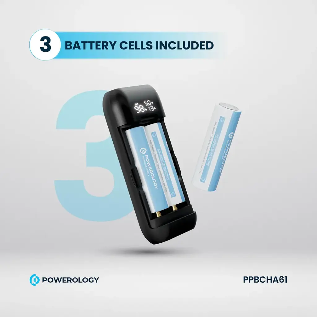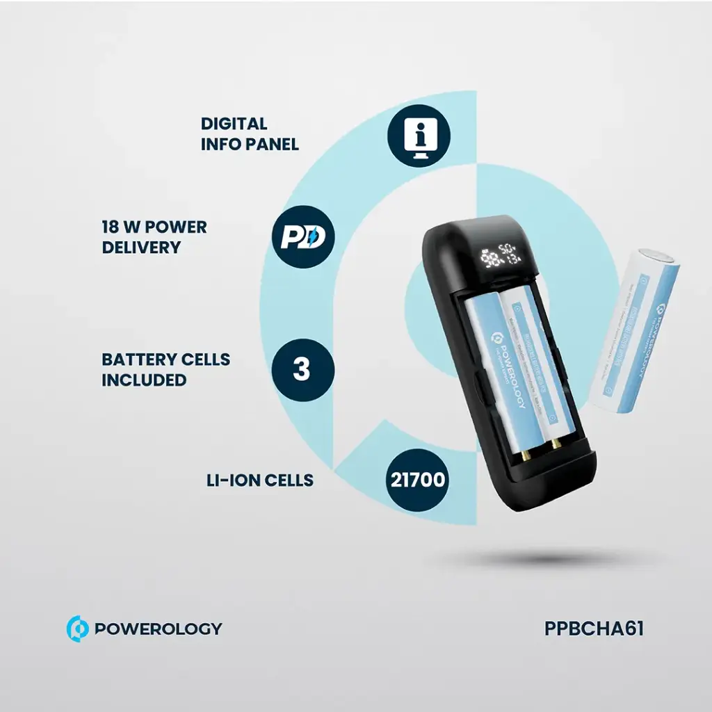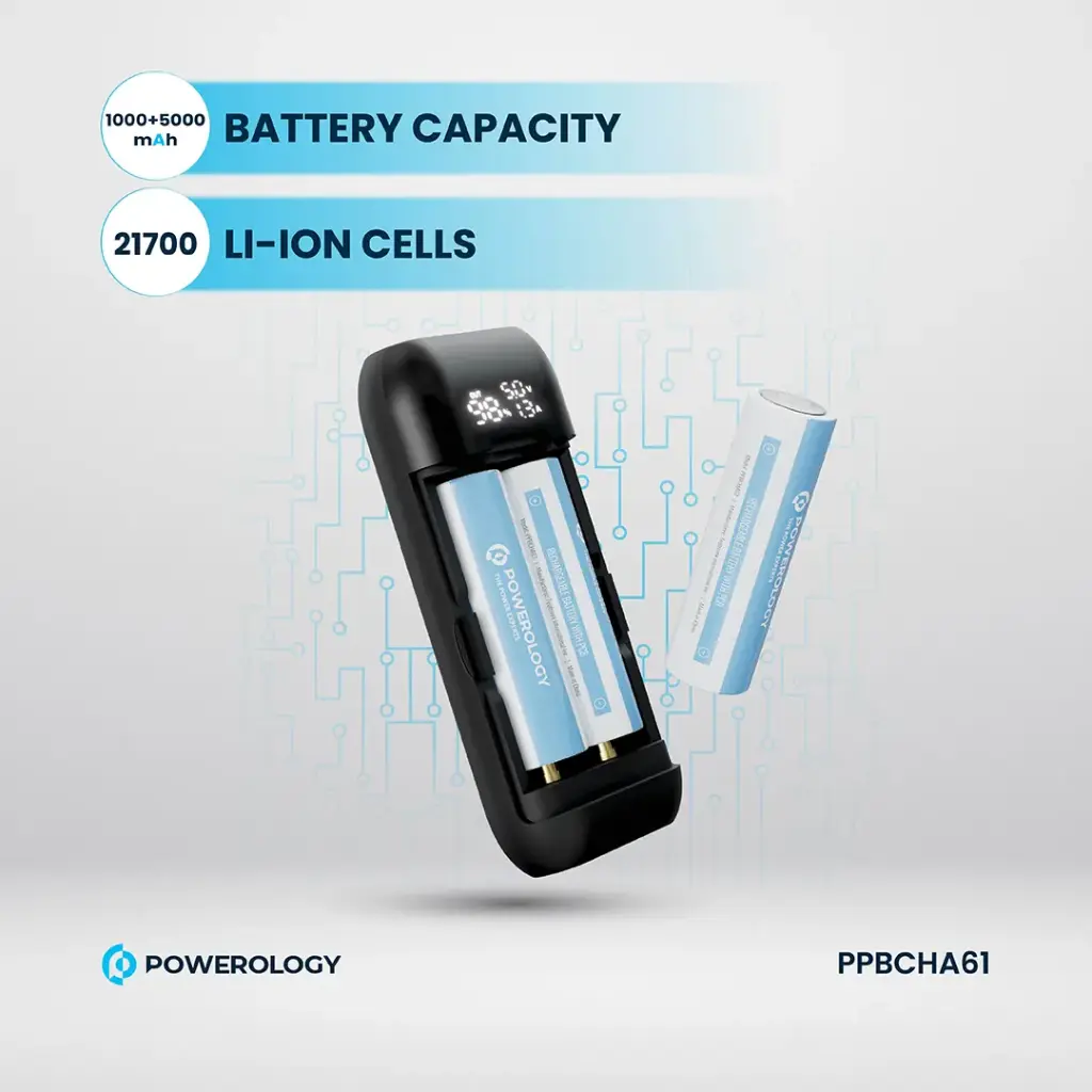 The Powerology DIY Cell 10000+5000mAh Power Bank provides ultimate flexibility and performance to one's need for charging. Equipped with a USB-C input and output, it supports fast charging of up to 18W for quick power deliverance to devices. The USB-A output also delivers fast charging at 18W, thereby providing efficiency in speed when it comes to charging multiple devices. Equipped with a 21700-cell-supported battery model and coming with three such battery cells, this power bank securely stores power for a long time. An intelligent charge management system optimizes charging for the devices being charged, while the built-in safety features provide protection against overcharging and overheating. A digital info panel lets you conveniently see the status of the battery so that, at all times, you remain in control. The Powerology DIY Cell Power Bank is designed for simultaneous charging, meeting the demands of modern high-performance devices with ease and convenience.