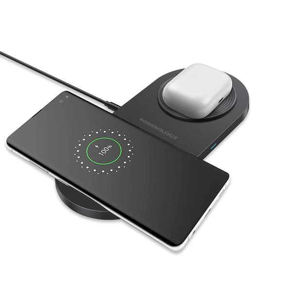 With our brand new Powerology dual wireless power pad, charging is made simple. Now you can charge your phone not only fast, but also wireless. This amazing feature means that you will not need an adaptor, cable, or even a charger to carry with you.This wireless charger transfers the power directly into your device. All you need to do is to place your devices on the pad for instant power! Leave charging cables behind and step up to a charger that matches effortlessly into your life and daily routine.