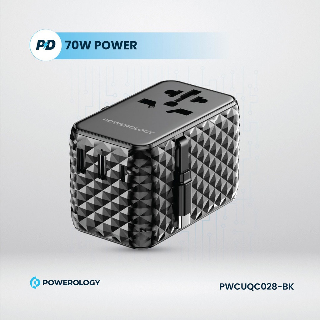 The Powerology GaN Universal Charger Retractable Type-C Cable is powerful and versatile and is aimed at users on the go. The charger has an input rating of 100-250V AC, 10A, while it is able to provide a power output of 2500W for charging efficiently and quickly all of your devices. The retractable Type-C cable has up to 20W power output with flexible voltage support from 5V/3A to 12V/1.67A. Equipped inside the charger are USB-C and USB-A, allowing it to support up to three items at a combined total output of 15W. Be it your smartphone, tablet, or whatever device you use, this charger can go from 0% to 60% in just 35 minutes. Compatible with more than 150 countries, this universal charger will work perfectly during travel, and built-in safeguards guarantee safety and reliability. Besides that, it also contains an additional fuse for extra added protection and durability.