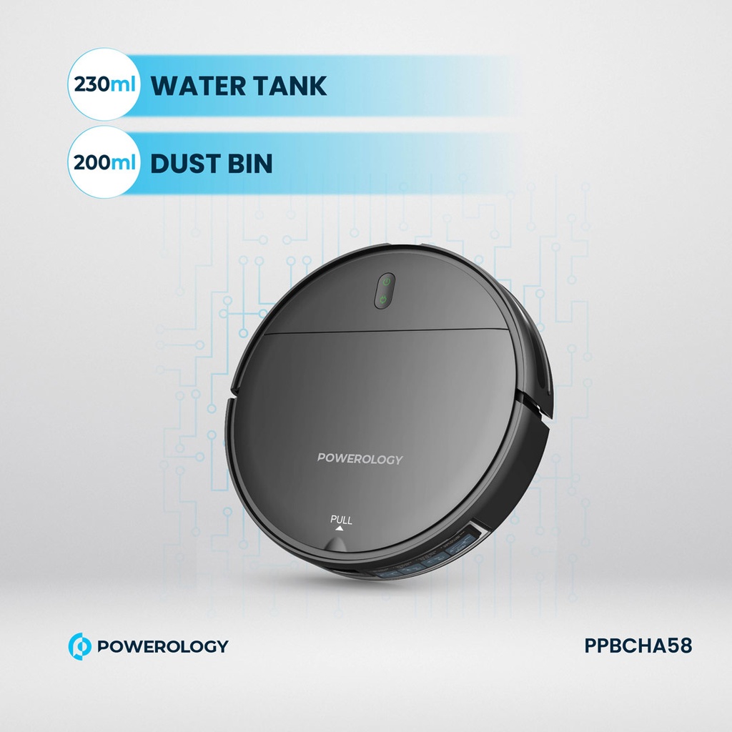Introducing the Powerology Smart Robovac Vacuum & Mop, the intelligent cleaning solution that automates and powers house cleaning. This highly efficient device features a robust brushless motor to ensure long-lasting performance and reduced maintenance. A 2600mAh, 14.5V Li-ion battery gives as many as 110 minutes of cleaning power per charge for easily cleaning more rooms in one go. In the Robovac, there is a twin system with a 230mL water tank for perfect mopping and a 200mL dustbin with an installed HEPA filter inside to trap minute particles and allergens for a cleaner, healthier environment. Strong suction power with 2000Pa easily lifts dirt and debris off from carpets down to hard floors. Wi-Fi 2.4G connectivity controls and customizes your cleaning from anywhere via a smartphone app. Be it dust, spills, or routine maintenance, this is the go-to tool for keeping your home pristine: the Powerology Smart Robovac Vacuum & Mop.