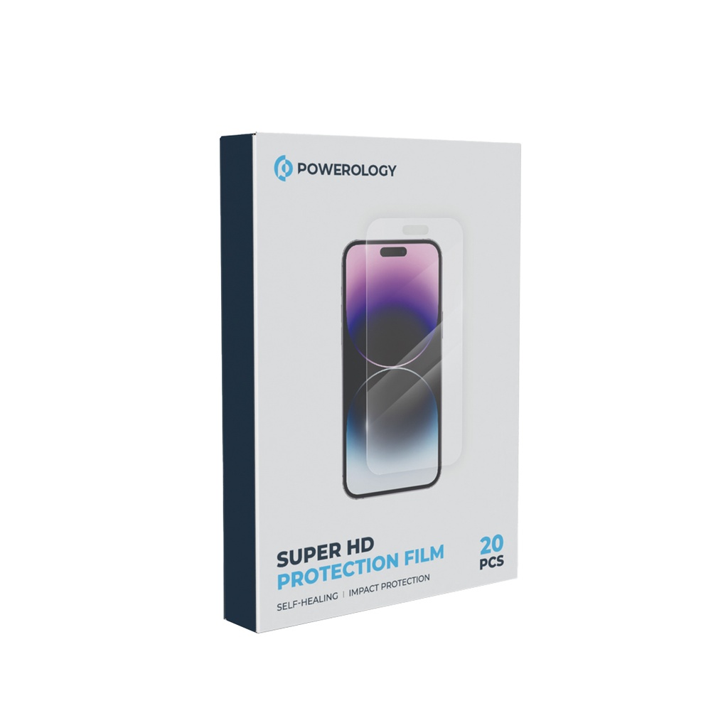 Experience the ultimate screen protection with Powerology Super HD Protection Film. This versatile pack includes 20 self-healing film pieces, each measuring 18x12cm, ensuring you have plenty of screen coverage for your devices. Not only do these films provide high touch sensitivity for seamless navigation, but they also offer impact protection and oleophobic-fingerprint resistance, keeping your screens crystal clear and free from smudges. Enjoy the HD ultra-clear quality and keep your devices looking their best with Powerology's superior screen protection.