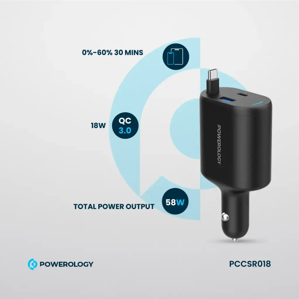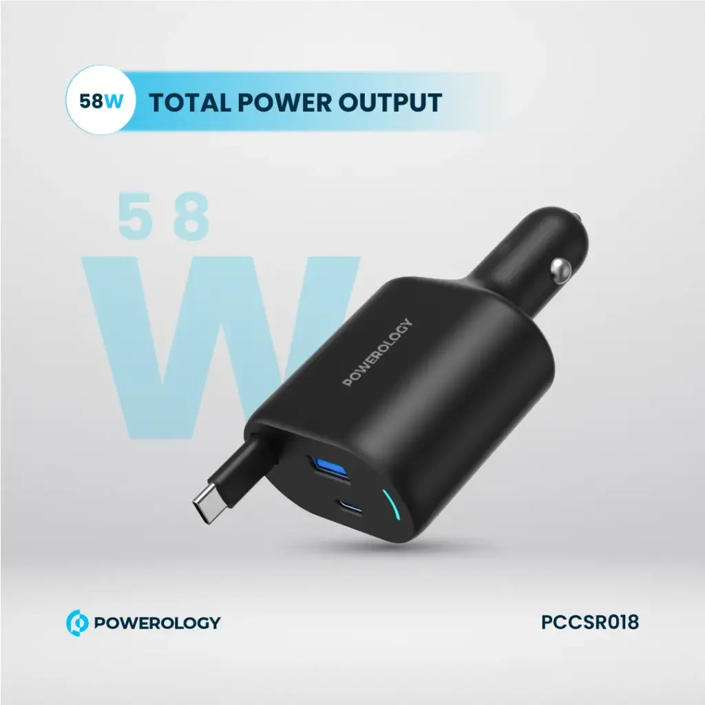 The ultimate product from Powerology comes in the form of its very own “Powerology Type-C Retractable Car Charger”. If you frequently travel around or go someplace in your car, this seems the most powerful and efficient way to keep your mobile devices charged all day. It is specifically optimized to blend with your vehicle perfectly because it is compatible with DC 12/24V. It has a long-lasting battery that never depletes, especially when you need it the most. With several great output options, there is a UAB-A output of 5V/3A, 9V/3A, and 12V/2.5A, even up to 30W. The USB-C1 and the USB-C2 are also included with 5V/3A, 9V/2.22A, and 12V/1.67A for each of them with the upper limit of 20W, thus allowing for a fast charge for the equipment. The charger comes with a 1M PVC retractable element that helps to eliminate some of the difficulties encountered when placing and organizing the charger after it has been used. It is also a creative opportunity because the two are used together to enable power distribution to all connected devices simultaneously without a hassle.