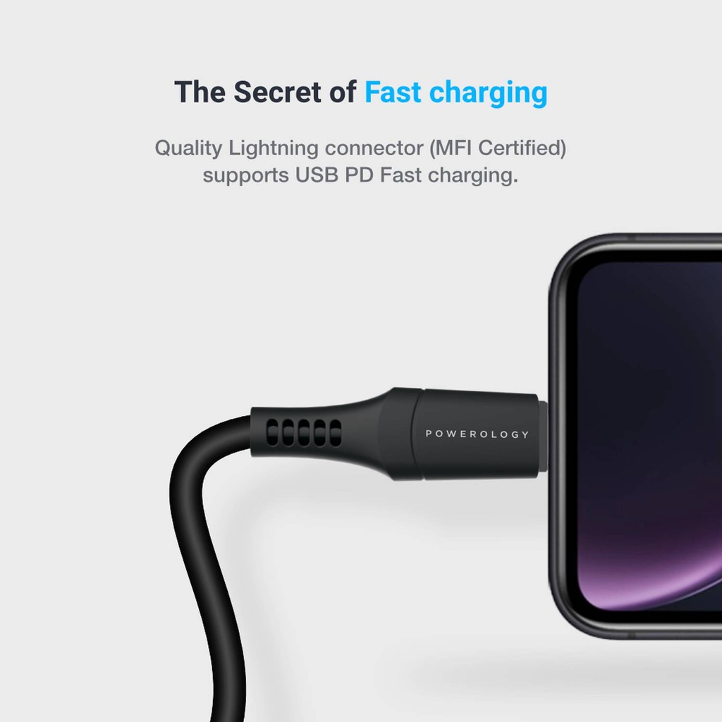 Meet your new charging cable, Powerology Type-C to Lightning PVC Cable. This unique product is crafted with premium material. A rubber head that increases flexibility and a PVC cord that assures optimum safety. This cable provides the most suitable charging rate for mobile phones and other Apple-made devices.