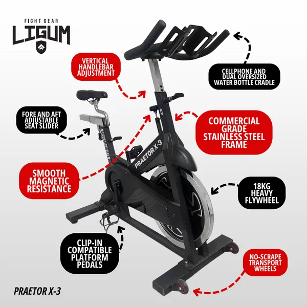 1 x Praetor X-3 Spinning Bike - Ligum Fight Gear