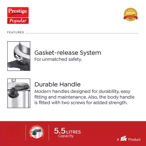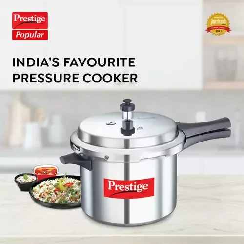 The Prestige Popular Virgin Aluminium Pressure Cooker is India's favourite, renowned for its sturdy virgin aluminium construction and trademark Prestige engineering, ensuring the highest quality and reliability for everyday cooking.