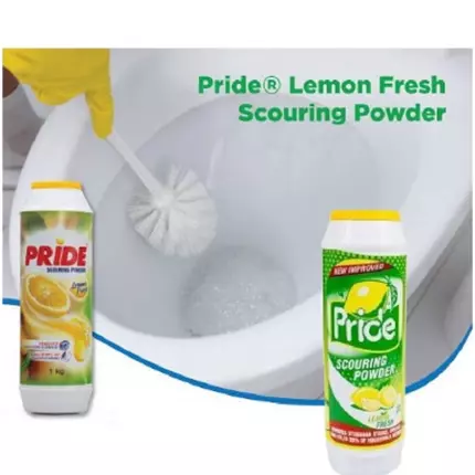 Pride Scouring Powder removes even the toughest grime and stains, leaving household surfaces clean. Its multipurpose formula means that it is designed to be used on sinks, baths, basins, toilet bowls, ceramic tiles, cookers, pots, pans and other working surfaces in and around the home.