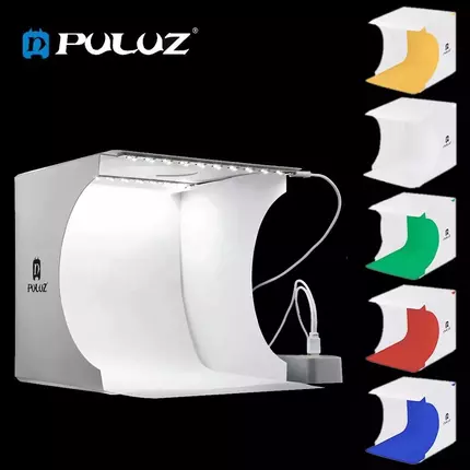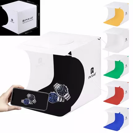 Specifications: Material: Plastic Mini LED Photo Studio Color: White LED quantity: 20pcs Input voltage: 5V / 1A Backdrop Color: White, Black, Orange, Green, Red, Blue LED Power: Micro USB port Unfolded Dimension: approx. 22 x 23 x 24 cm Package Dimension: approx. 30 x 23 x 4 cm Features: --Portable mini led photo studio helps you shoot high quality images. --Magnetic structure, easy to assemble. --Super bright LED beads, provide average light for your product. --Foldable design, Easy for carrying around. --Literally build up a photo studio within 5 seconds. --Supplied with 6 backdrops (white & black & Orange & Green & Red & Blue) to suit your needs. --Comes with a USB cable. --Ideal for shooting small products, such as toys, jewels, and watches, etc. Package includes: 1 x Mini LED Photo Studio 1 x White Backdrop 1 x Black Backdrop 1 x Orange Backdrop 1 x Green Backdrop 1 x Red Backdrop 1 x Blue Backdrop 1 x USB Cable 1 x User manual