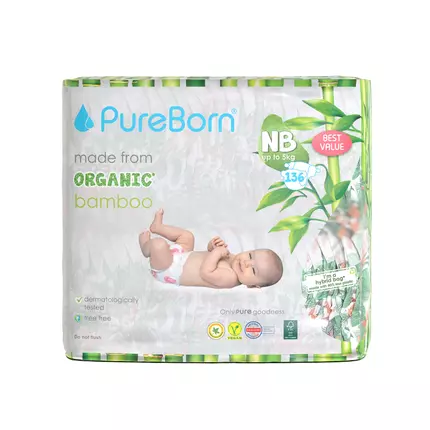 Are PureBorn diapers eco-friendly? Yes, PureBorn baby diapers are highly eco-friendly and are the perfect substitute for other commercial variants. These diapers are made with unbleached bamboo fibers (43% bamboo pulp) and Super Absorbent Polymer (SAP) in the core layer and soft non-woven fabric on both top and bottom layers to provide the best comfort and protection to the baby's delicate skin. These are also made with bio-hybrid plastic, containing 40% less petrochemicals than standard plastic packaging bags, and thus are biodegradable.